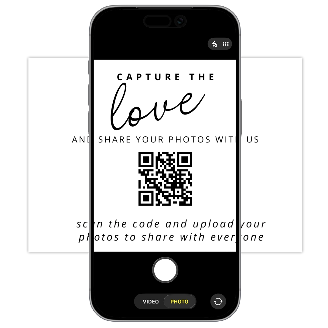 Guests will easily share full-quality photos and videos to your personalized album using your unique wedding photo qr code. Choose from print-ready templates that match your wedding theme.